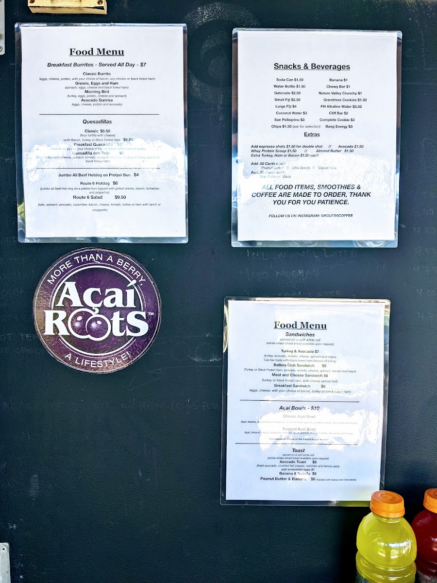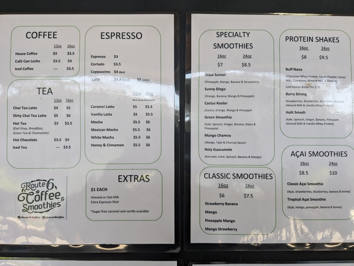 Route 6 Coffee & Smoothies Menu
